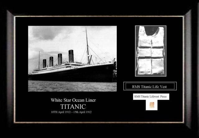 This item is custom framed 24 x 18cm with a photo of RMS Titanic along with a custom attached piece from the White Star Liner lifevest Titanic. (...)